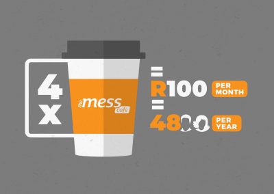 Brief: In alignment with our annual fundraising event, vision night, we want to create an easy-to-use visual campaign that allows our donors to give and also receive awards. We need a minimalistic infographic using coffee cups which will relate to giving. These will be used in our presentation, but we will also hand out cards, and when donors sign up they will be giving a loyalty card with coffees as rewards.
