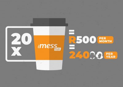 Solution: We had spent a lot of time within the Mess café and knew the brand well. We then replicated the actual cups within the coffee shop to come up with powerful graphics that linked giving to the cause.