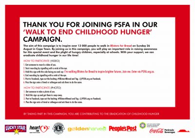 Blisters for Bread needed a central coherent theme to help encompass and support the brand messages, and to set the tone for the communications and creative elements of the 2015 campaign. It was important for the theme to stem from an insight related to the study of school feeding. For Blisters for Bread 2015, we could incorporate its central tagline, “You cannot teach a hungry child”, but we needed a strong statement that people could identify with and thereafter participate in the event, either by physically walking or through donations.